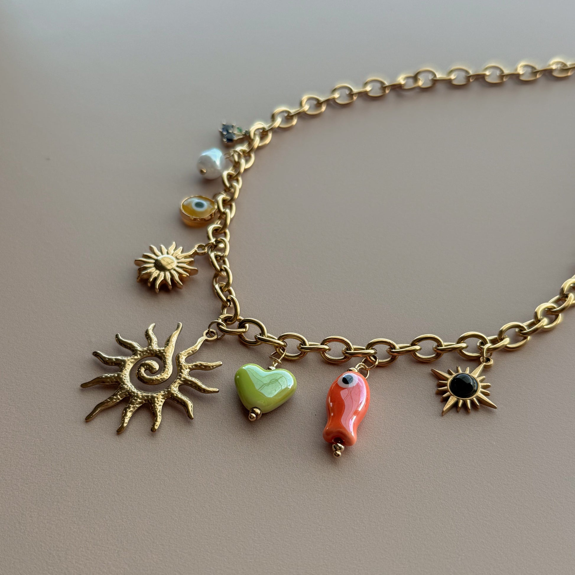 Collar con charms, hecho de acero inoxidable y dijes de cerámica